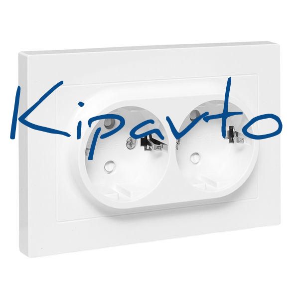 Эпика Механизм розетки двойной 16А с заземлением со шторками с рамкой белый EKF