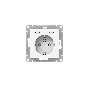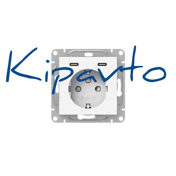 Эпика Механизм розетки с USB-C - 2шт 16А с заземлением со шторками белый EKF