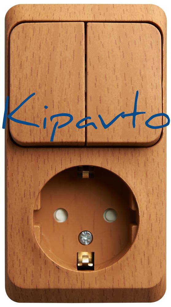 ЭТЮД блок открытой установки Розетка с зеземлением со шторками + Выключатель 2-клавиш., бук