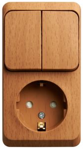 Блок Systeme Electric (ранее Schneider Electric) ЭТЮД (бук, открытой установки) предназначен для применения в сетях до 250В, состоит из розетки на 16А с заземлением и шторками и двухклавишного выключателя на 10А. Две клавиши позволяют управлять двумя источниками света с одной точки. Изделия цвета Бук обладают уникальным рисунком, напоминающим древесный сруб. Он удобен в применении и отлично подходит для коридора.