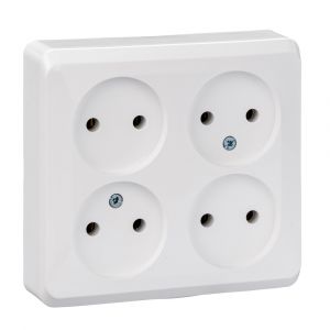 ЭТЮД Розетка четырехместная наружная без заземления без шторок 16А 250B белая