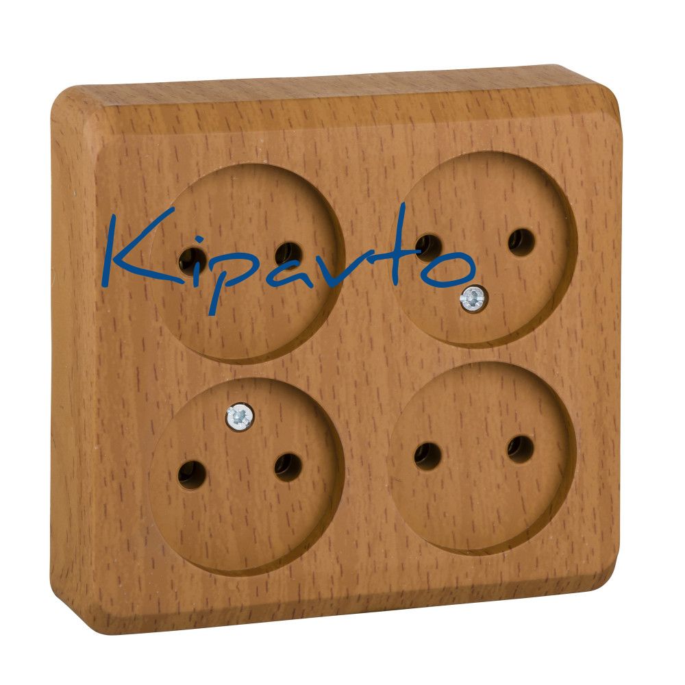 Розетка Systeme Electric (ранее Schneider Electric) ЭТЮД (бук, открытой установки) четырёхместная, без шторок и заземления предназначена для применения в сетях до 250В, на ток до 16А. Четырёхместная розетка позволяет подключить четыре устройства в одном месте. Она проста в установке и удобна в применении. Изделия цвета Бук обладают уникальным рисунком, напоминающим древесный сруб. Сделано в России.