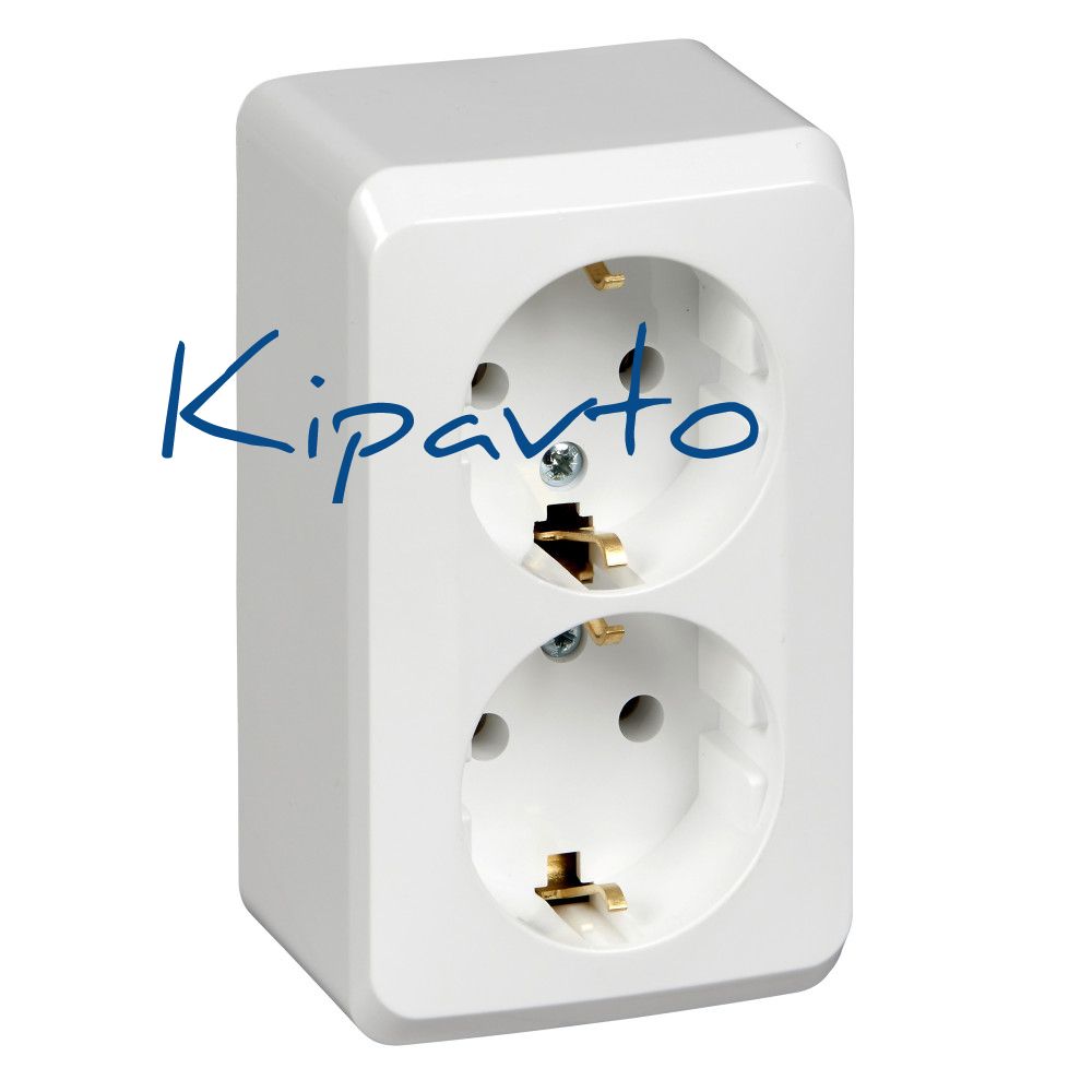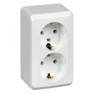 ЭТЮД Розетка двойная наружная с заземлением без шторок белая