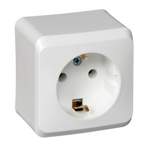 Розетка Systeme Electric (ранее Schneider Electric) ЭТЮД (белый, открытой установки) одноместная с заземлением, без шторок предназначена для применения в сетях до 250В, на ток до 16А. Заземление обеспечивает безопасность при косвенном прикосновении. Она проста в установке и удобна в применении. Сделано в России.