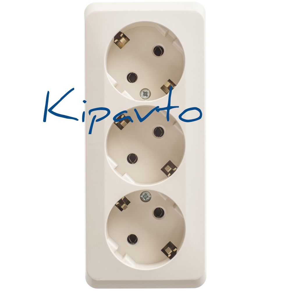 ЭТЮД Розетка тройная наружная с заземлением без шторок 16А 250B кремовый