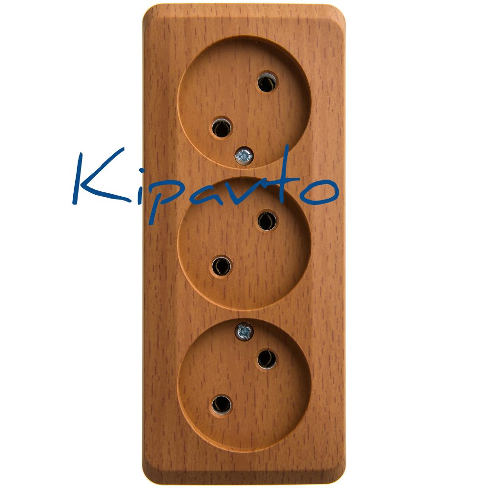 ЭТЮД Розетка тройная открытой установки без заземления без шторок 16А 250B,бук