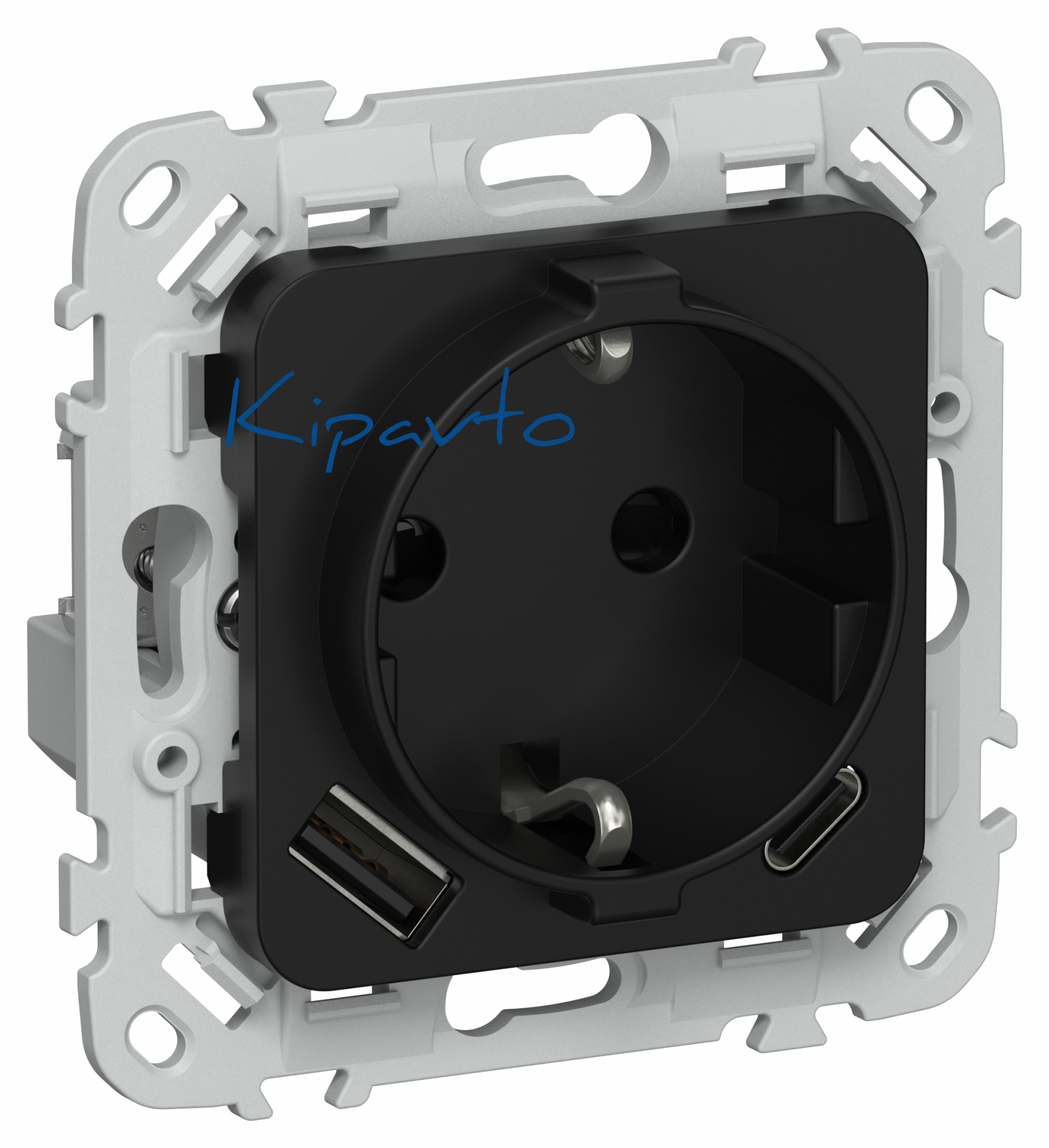FLITE Розетка 1-местная с заземлением с защитными шторками 16А с USB A+C 20Вт безвинтовое крепление РСЮшс11-1-ФлЧ черный IEK