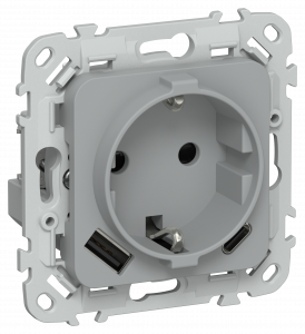 FLITE Розетка 1-местная с заземлением с защитными шторками 16А с USB A+C 20Вт безвинтовое крепление РСЮшс11-1-ФлС серый IEK