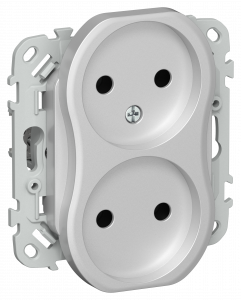 FLITE Розетка 2-местная без заземления без защитных шторок безвинтовое крепление 10А РС02-1-ФлА алюминий IEK