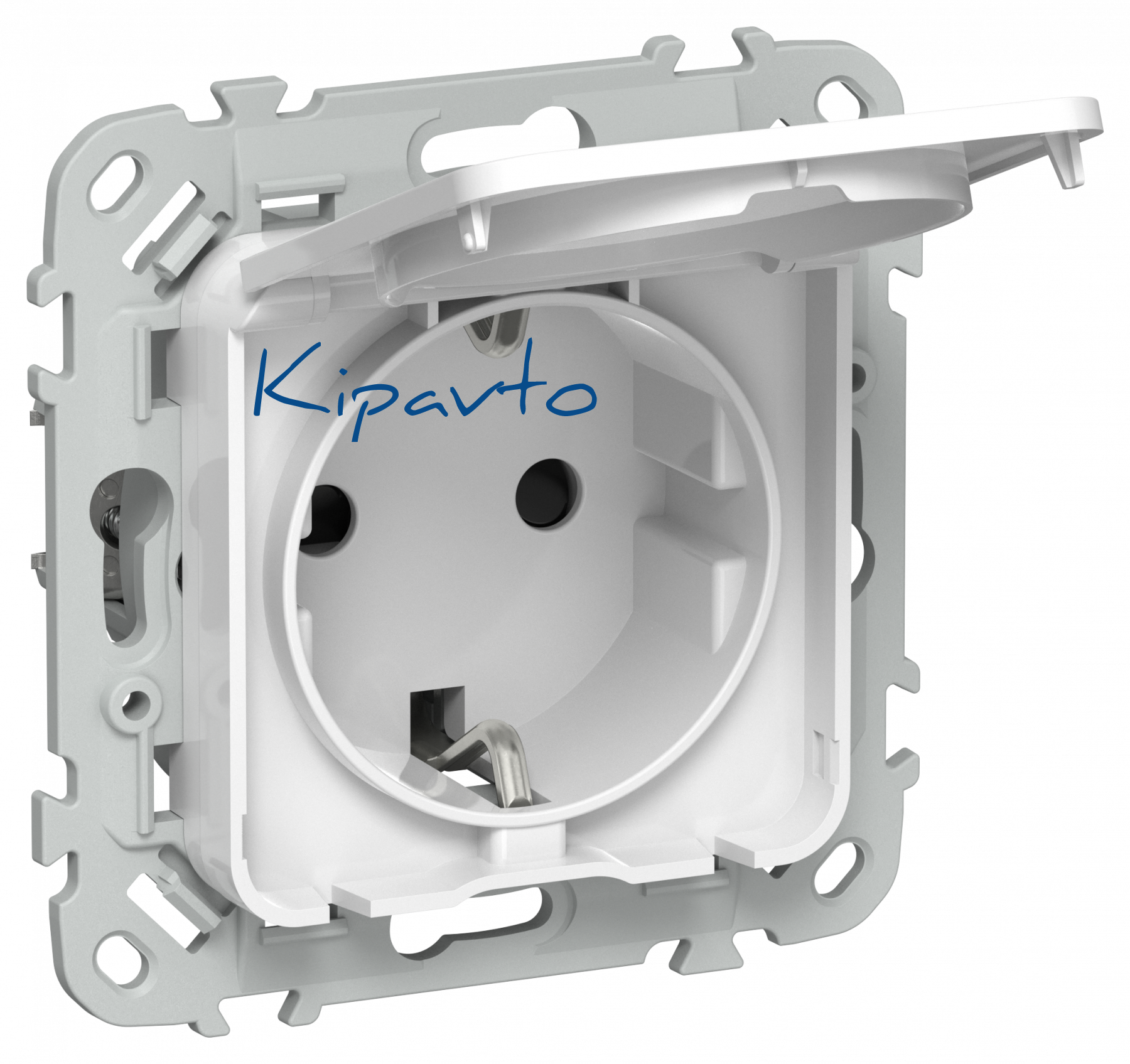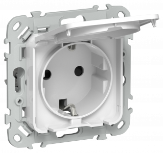 FLITE Розетка с заземлением с защитными шторками и крышкой безвинтовое крепление 16А IP44 РСшкр11-1-44-ФлБ белый IEK