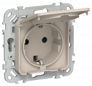 FLITE Розетка с заземлением с защитными шторками и крышкой безвинтовое крепление 16А IP44 РСшкр11-1-44-ФлЛ льняной IEK