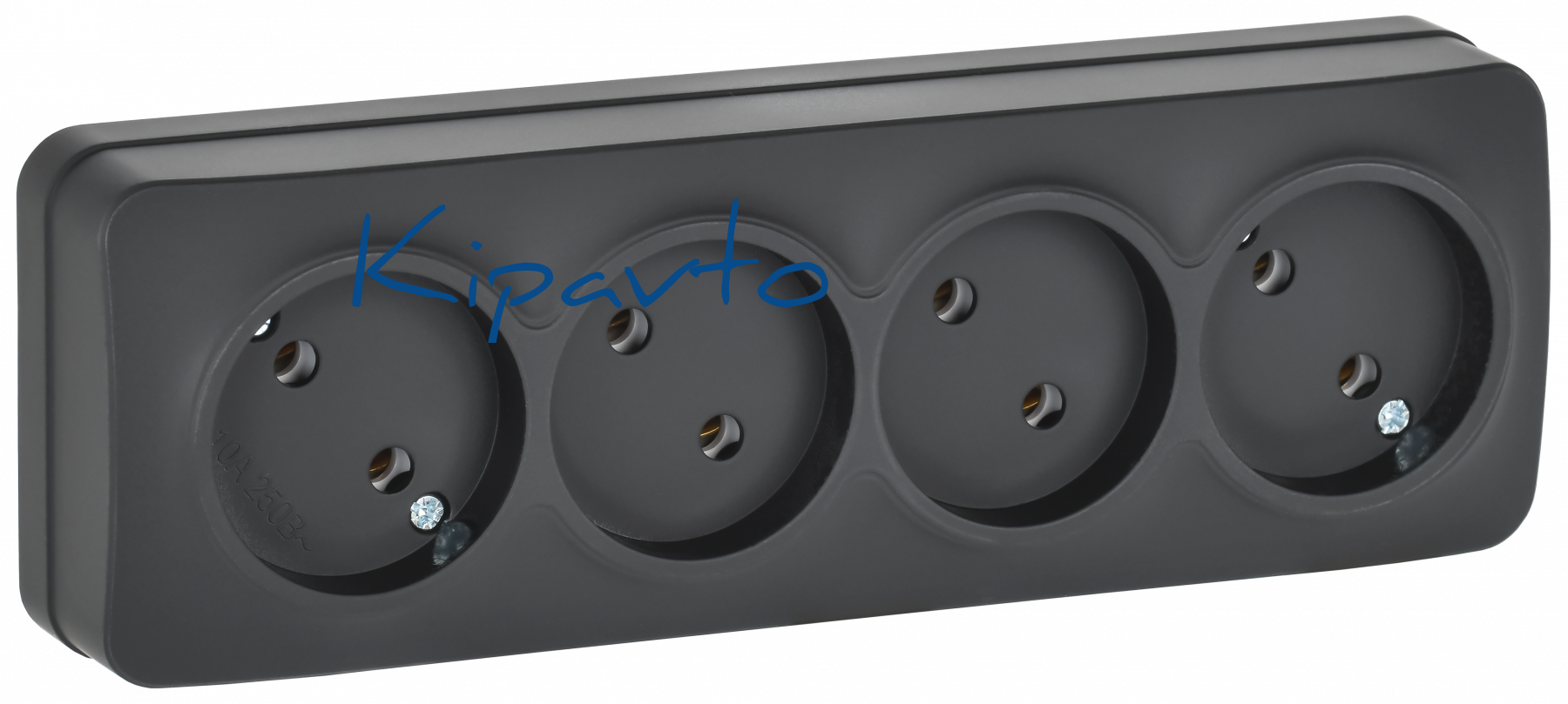 GLORY Розетка 4-местная для открытой установки без заземления без защитных шторок 10А РС24-2-ХЧм черный матовый IEK