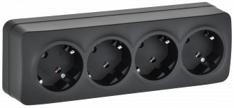 GLORY Розетка 4-местная для открытой установки с заземлением без защитных шторок 16А РС24-3-ХЧм черный матовый IEK