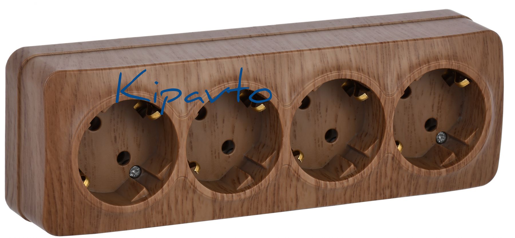 GLORY Розетка четырехместная наружная с заземлением дуб