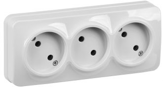 GLORY Розетка трехместная наружная без заземления белая