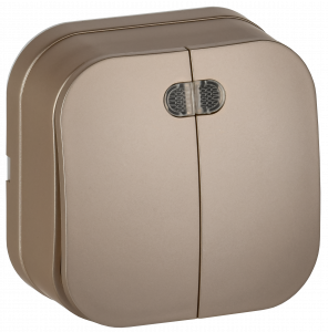 GLORY Выключатель 2-клавишный для открытой установки с индикацией 10А ВС20-2-1-ХШм шампань матовый IEK