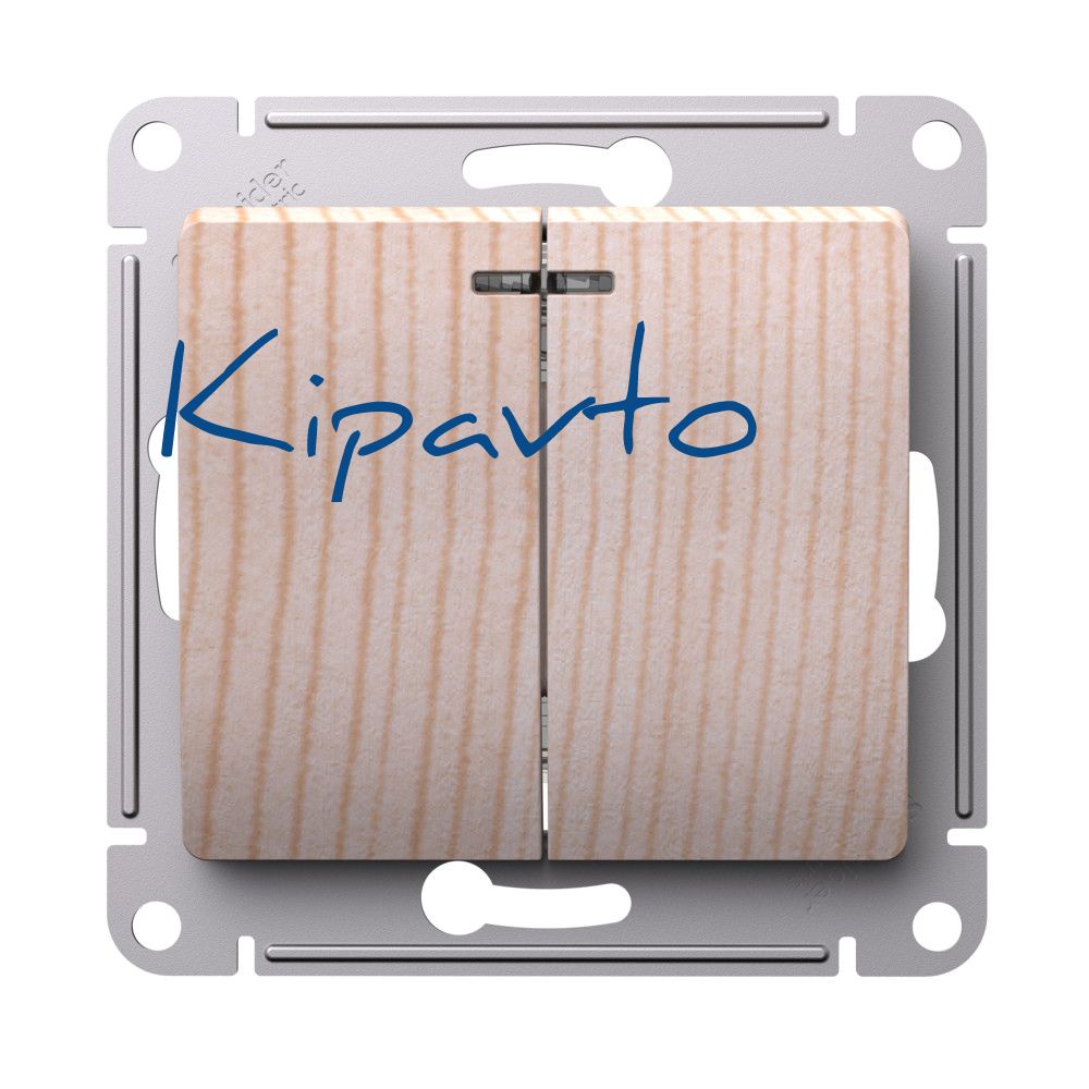 GLOSSA 2-клавишный выключатель с подсветкой,сх.5а,10АХ,механизм, сосна