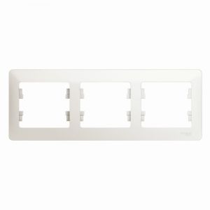 Рамка Systeme Electric (ранее Schneider Electric) серии Glossa (цвет перламутр) трёхместная. Устанавливается в горизонтальном положении. Выполнена из материала PС+ASA, стойкого к УФ-излучению и появлению царапин. Позволяет гармонично вписать электроустановочное изделие в интерьер помещения.