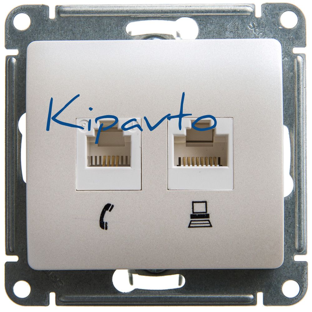 GLOSSA Розетка двойная RJ11+RJ45 категория 5E перламутр в рамку