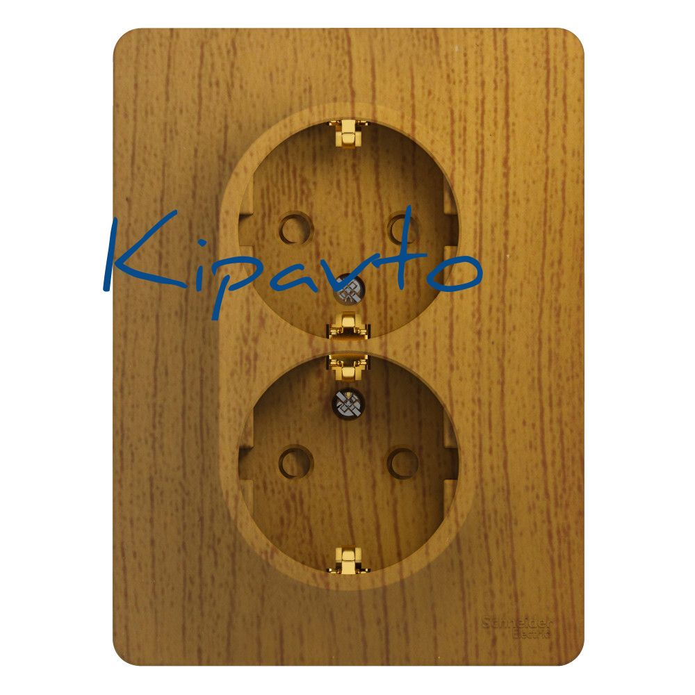 GLOSSA Розетка двойная с заземлением со шторками дуб в сборе