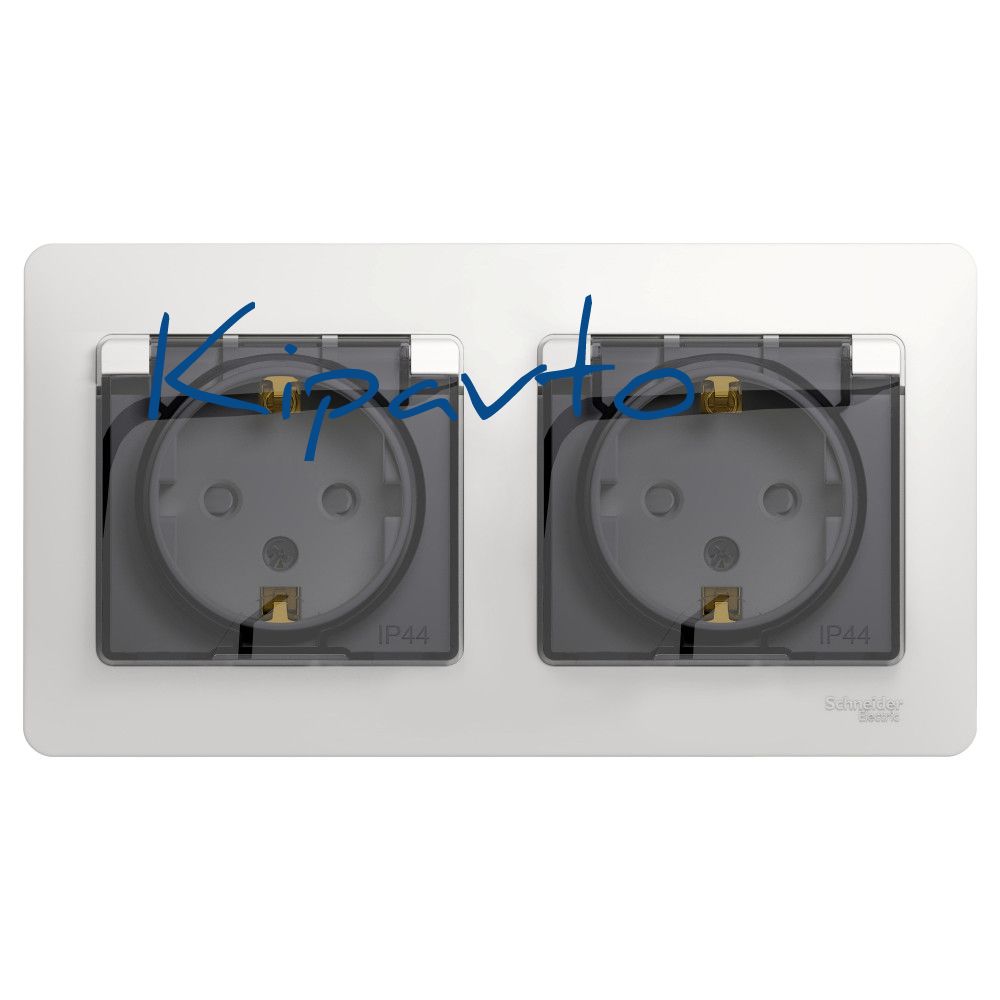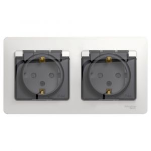 GLOSSA Розетка двойная с заземлением, со шторками, в сборе, IP44, белый