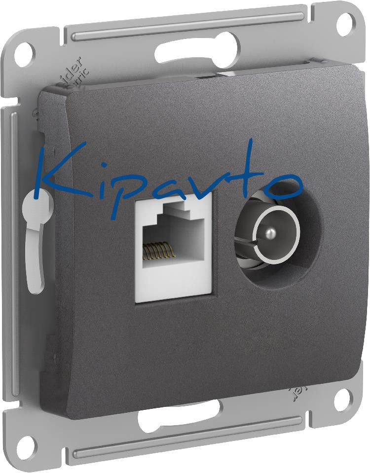 GLOSSA РОЗЕТКА двойная ТВ + компьютерная RJ45, кат. 5Е, ГРАФИТ