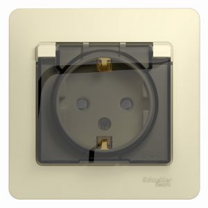 GLOSSA Розетка с заземлением со шторками с крышкой бежевая в сборе IP44