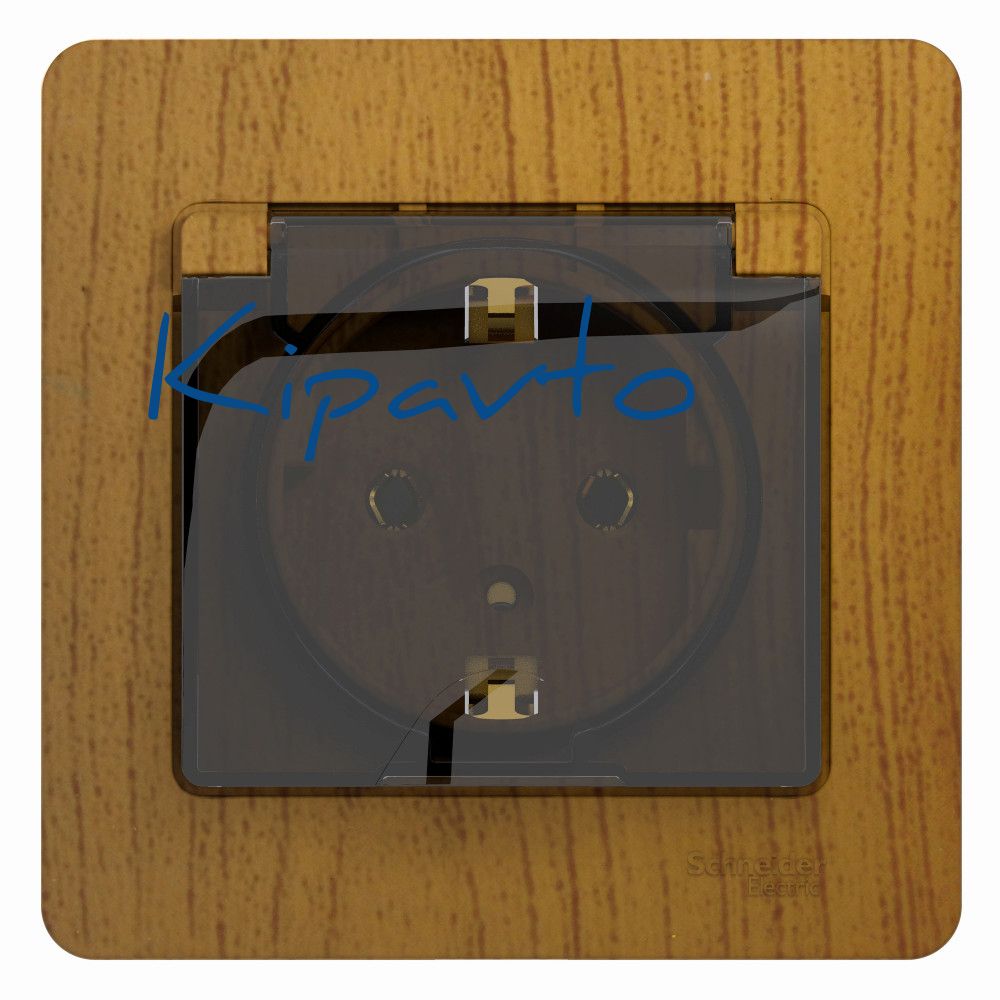 GLOSSA Розетка с заземлением со шторками с крышкой IP20 дуб в сборе