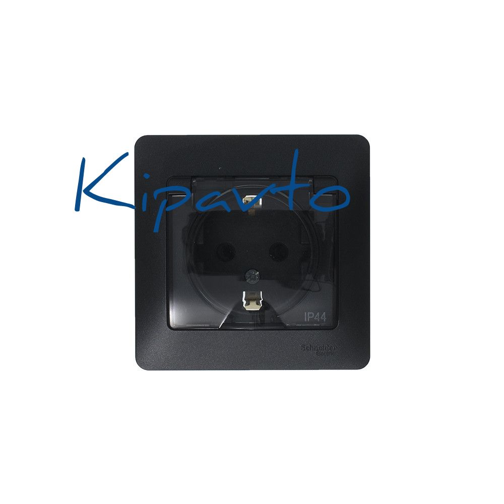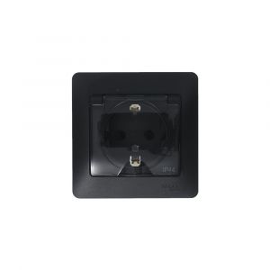 GLOSSA Розетка с заземлением со шторками с крышкой IP44 антрацит в сборе
