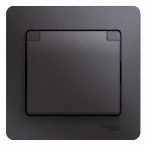 Розетка Systeme Electric (ранее Schneider Electric) серии Glossa (в сборе, цвет графит) одинарная с заземлением, шторками и крышкой подходит для сетей 250 В, на ток 16 А. Заземляющий контакт обеспечивает дополнительную защиту от удара электрическим током. При наличии заземления электрический потенциал уходит в землю, защищая человека. Выполнен из материала PС+ASA, стойкого к УФ-излучению и появлению царапин. Эргономичные клеммы розеток расположены в один ряд.