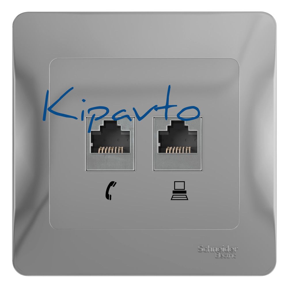 Механизм Systeme Electric (ранее Schneider Electric) серии Glossa (цвет алюминий) двойной розетки разъёмами RJ45 категория 5е и RJ11 предназначен для удобного и быстрого подключения вашего компьютера и телефона к соответствующим сетям. Выполнен из материала PС+ASA, стойкого к УФ-излучению и появлению царапин.