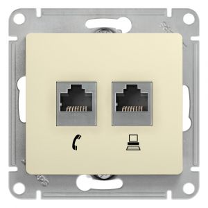 GLOSSA Розетка телефон/компьютер RJ11+RJ45 категория 5е в рамку бежевая