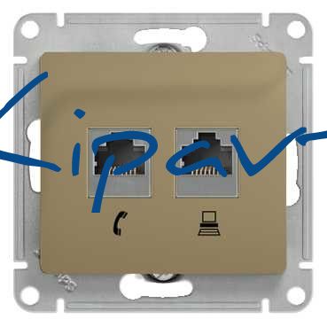 GLOSSA Розетка телефон/компьютер RJ11+RJ45 категория 5е в рамку титан