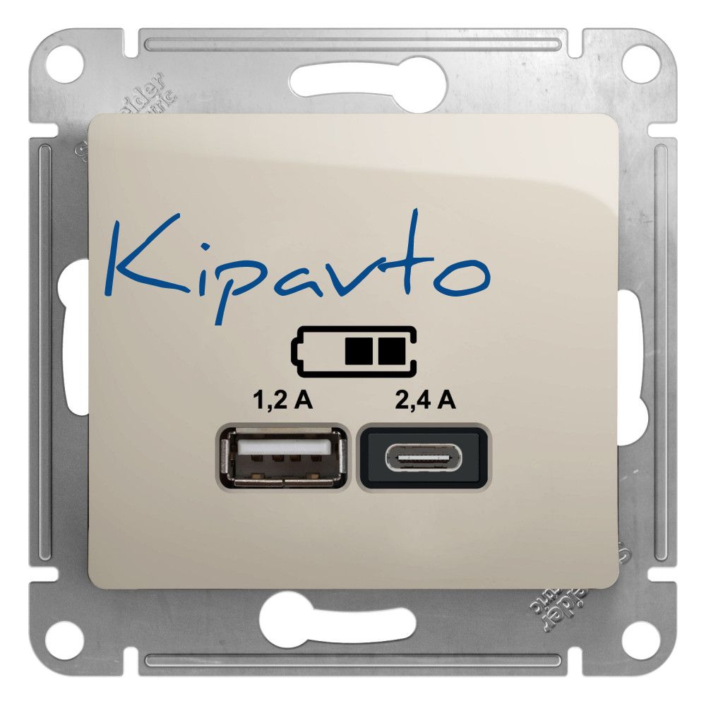 GLOSSA USB РОЗЕТКА A+С, 5В/2,4А, 2х5В/1,2 А, механизм, МОЛОЧНЫЙ