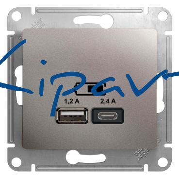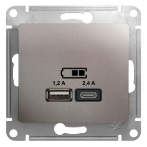 Розетка Systeme Electric (ранее Schneider Electric) серии Glossa (цвет платина) двойная USB с разъемами типа A+C. Выполнена из материала PС+ASA, стойкого к УФ-излучению и появлению царапин. Самая современная USB-зарядка с двумя разъемами позволяет заряжать как стандартные мобильные устройства через разъем типа А, так и новейшие устройства, в том числе ноутбуки, с разъемом типа С.