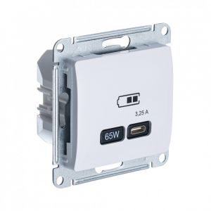 GLOSSA USB РОЗЕТКА тип-С 65W высокоскор.заряд. QC, PD, механизм, БЕЛЫЙ
