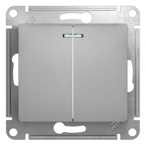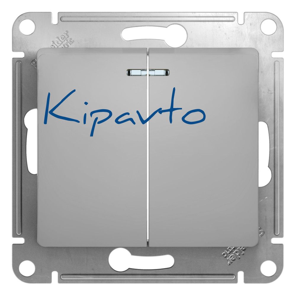 GLOSSA Выключатель двухклавишный с подсветкой в рамку алюминий сх.5а