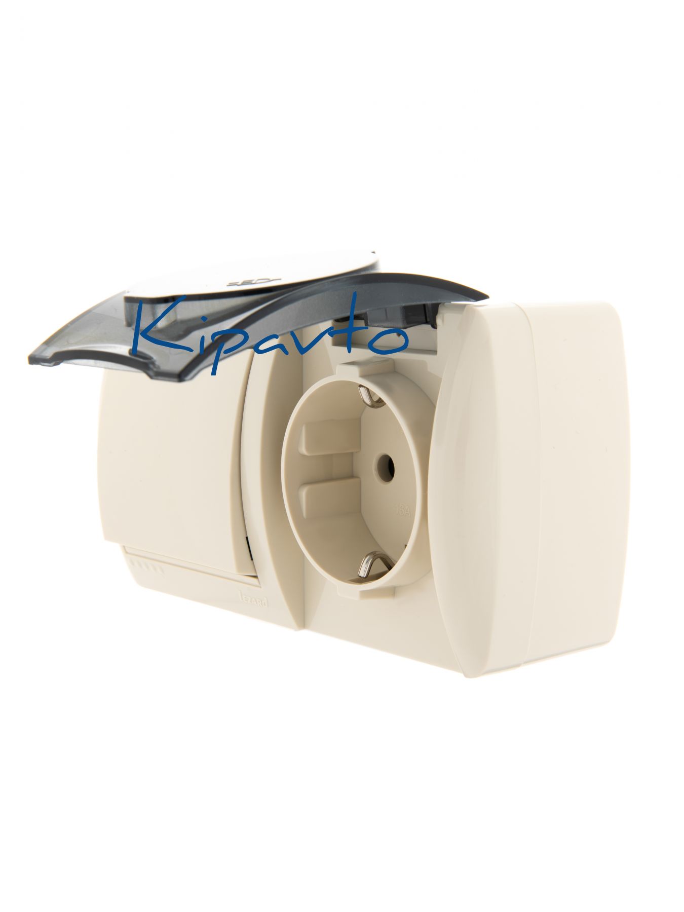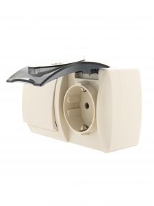 HATA Выключатель с розеткой с заземлением и крышкой бежевый, горизонтальный