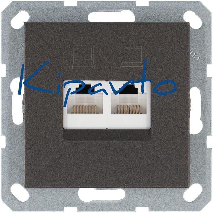 Интернет-розетка RJ45 двойная с накладкой, цвет Мокко