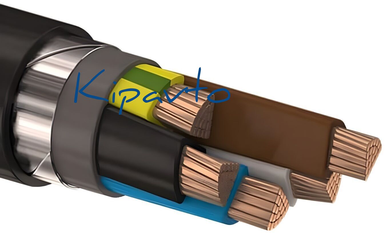 Силовой кабель с токопроводящими жилами из меди, изоляция произведена из сшитого полиэтилена, оболочка выполнена из поливинилхлоридного пластификата. Дополнительно устанавливаются бронированные ленты из стали для износостойкости.
