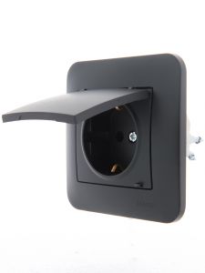 KARINA Розетка с/з с крышкой керамика чёрный бархат (10шт/120шт)