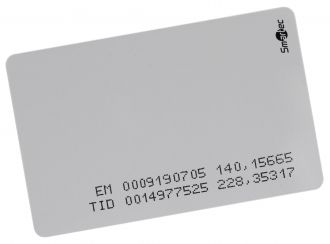 Идентификационная карта с рабочей частотой 860–960 МГц (UHF) / 125 кГц (EM) и расстоянием считывания до 10 м/6 см. Обладает компактными размерами 86х54х0.8 мм