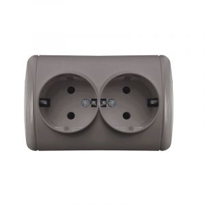 Клио розетка двухместная Клио, IP44, с/з, о/у, 16А, 220В, серый (еврослот)