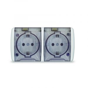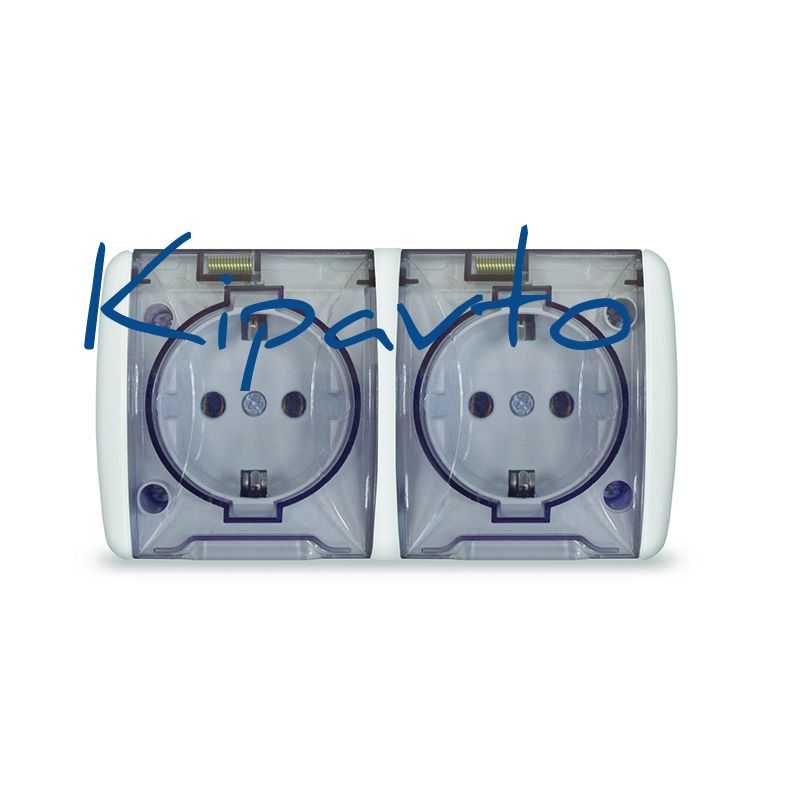 Клио Розетка двухпостовая с/з с прозрачной крышкой IP54 белый