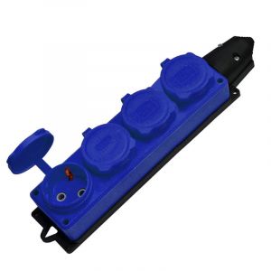 Колодка 4-х местная однофазная с заглушками КОМПАКТ каучук синий