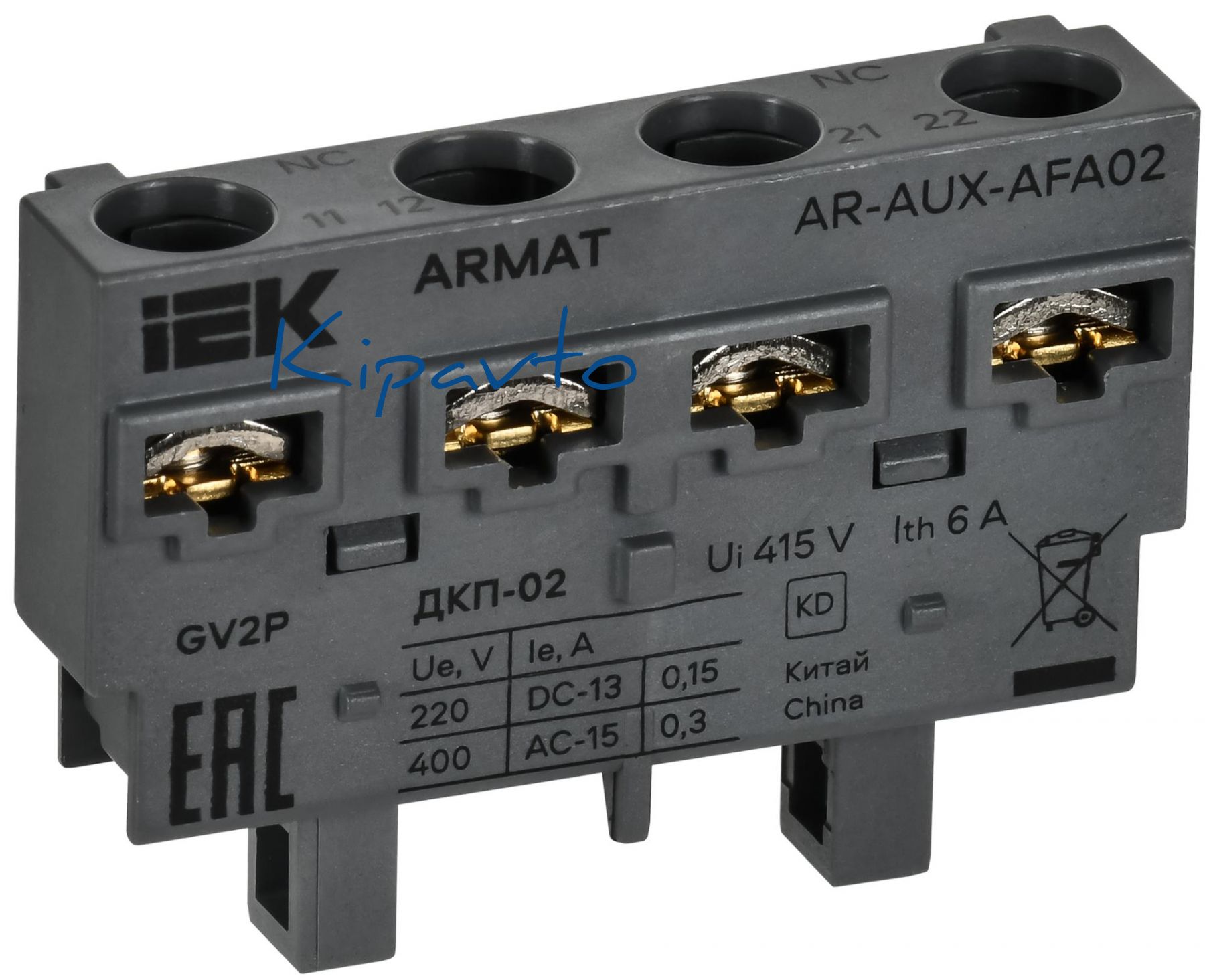 Дополнительный контакт для автоматического выключателя защиты двигателя серии ARMAT предназначен для коммутации цепей управления и сигнализации переменного тока при изменении коммутационного состояния главных контактов. Дополнительный контакт соответствует требованиям ТР ТС 004/2011.