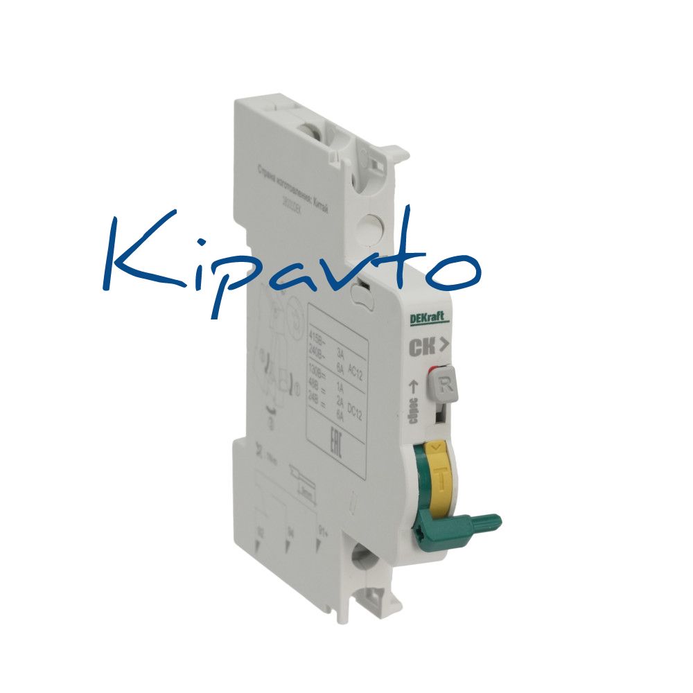 Контакт сигнальный СК-101 для автоматических выключателей серии ВА-101 DEKraft, предназначен для сигнализации аварийного срабатывания выключателя, тип контакта - переключающий, номинальный ток - 6 А, ном. напряжение - 220 В пер. тока, ширина - 9 мм, установка - на DIN-рейку, присоединение к выключателю слева. Контакты переходят в свое начальное состояние при возврате выключателя в исходное положение.