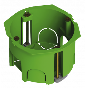 Установочные коробки КУ позволяют осуществлять монтаж электрических розеток, выключателей, диммеров и других электроустановочных изделий в полые стены и перегородки. Коробки укомплектованы металлическими лапками. Эти лапки в исходном состоянии фиксируются специальными стопорами. Благодаря этому лапки во время транспортировки не разбалтываются и не теряются. Стопоры срезаются лапками при вращении винта, когда коробка устанавливается в стену. Надо просто вращать винт по часовой стрелке, преодолевая небольшое сопротивление вращению. Все установочные коробки данной серии соединяются между собой в блоки, для установки рядом вертикально или горизонтально. Соединение осуществляется при помощи кабельных переходников ПК5201 (для коробок старых конструкций) или ПК5202 (для модернизированных коробок) и может содержать несколько механизмов в блоке (межцентровое расстояние 71 мм). При использовании крышки К5001 установочные коробки преобразуются в распределительные.
