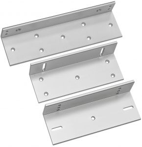 Комплект кронштейнов L и Z типа выполнен из алюминия и предназначен для крепления электромагнитных замков на двери, открывающиеся внутрь.