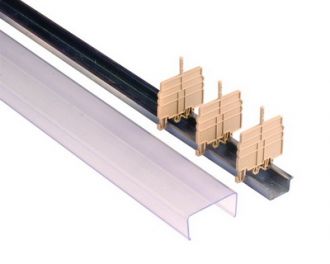 Предназначена для защиты от случайного контакта с токоведущими частями. Устанавливается на рейки типа Omega или G. Защищает зажимы сечением до 70 мм2. Материал - самозатухающий пластик.